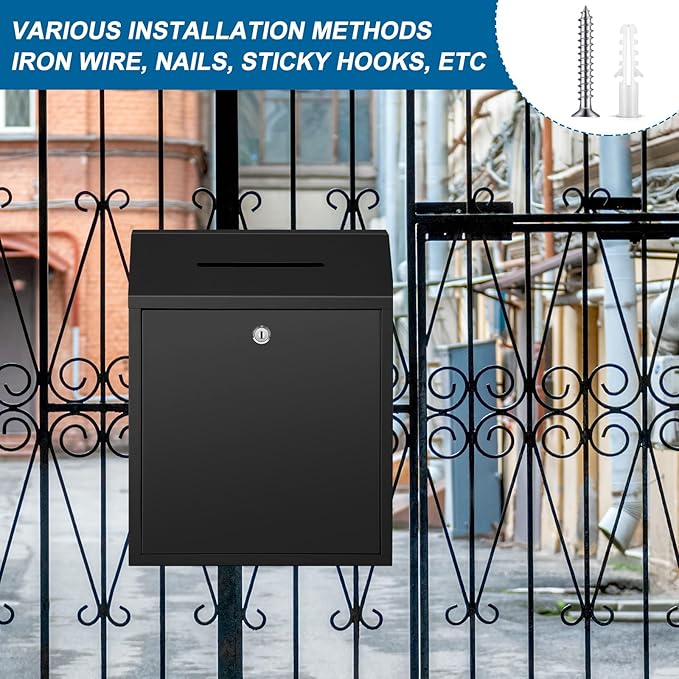 - Delicate Design: the top of our mailbox wall mounted outdoor is designed with a rainproof cover, which can effectively prevent rain from entering the mailbox; There is a small square mouth under the cover, which can facilitate your daily delivery of letters and other items; The keyhole design of the product is on the front, which can facilitate you to take out the items in the mailbox at any time