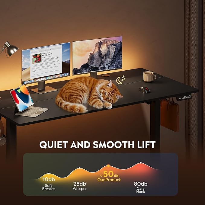 - 【Quite & Smooth Height Adjustments】Tri-motor system delivers whisper-quiet (<50dB) height transitions (28.35"-46.45") in seconds, eliminating manual adjustments and prevent desktop tilting. Standing desk adjustable height perfected for ergonomic shifts, ensuring buttery-smooth operation whether sitting or standing.