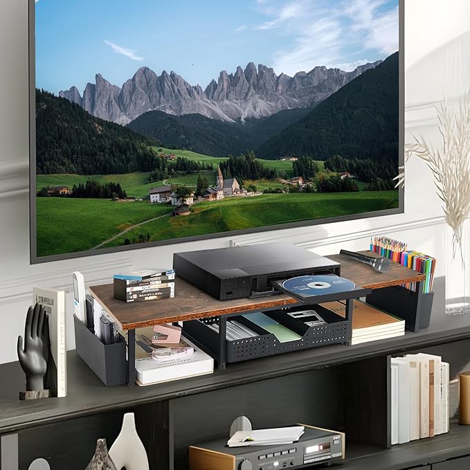 - Durable Aesthetic Design: Made of high-quality metal materials and retro wooden board design, it has excellent stability, simplicity and beauty. Not only suitable for placing monitors, but also as a support frame for printers and laptops, making the work desktop more tidy