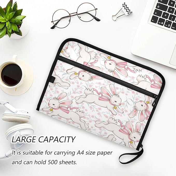 Accordion File Folder 13 Pockets Expanding File Folder with Sticky Labels Document Organizer Letter Size A4 Papers Expandable File Keeper,Running Bunny