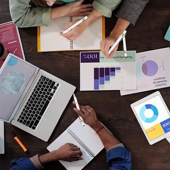 - 2 in 1 Design stylus pen: touch screen stylus and ballpoint pen; One end has a sensitive stylus, and the other end is equipped with a quality black ink ballpoint for convenient use; smooth and long-lasting ink flow writing; Press the stylus pen top to extend the pen for smooth and long-lasting ink flow writing;