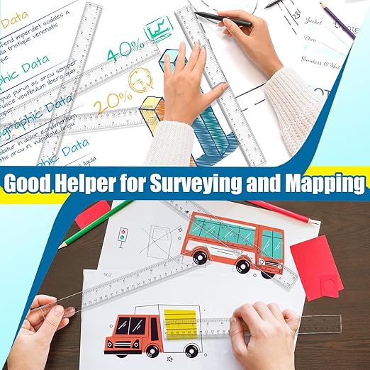 - Quality Material: The plastic rulers are made of premium ABS plastic which will not break easily. The quality material will enable you to use for a long time, and you will have a comfortable usage experience. They are lightweight and have suitable sizes, you can put them in your back bags easily and they will not take up too much of the space.