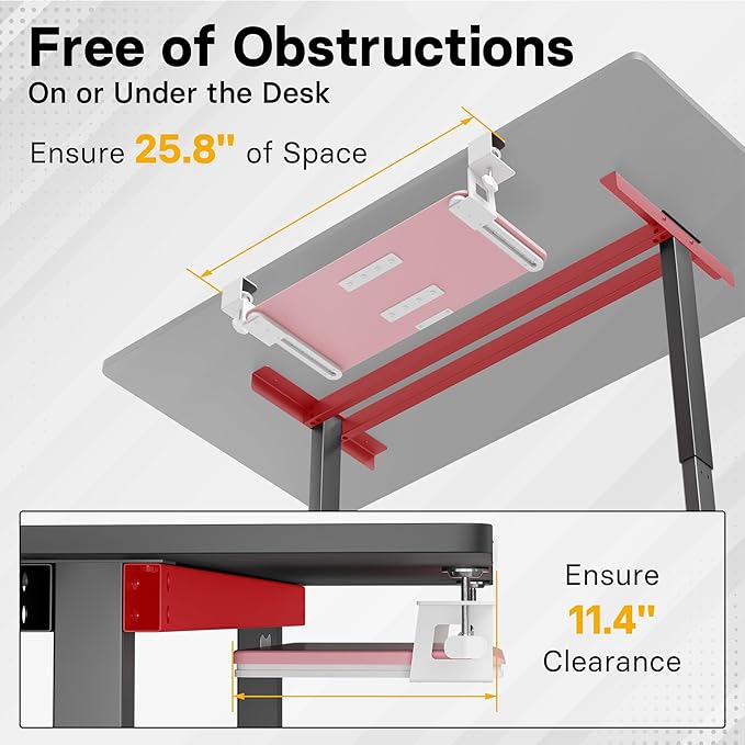 - ✅ MEASURE YOUR DESK BEFORE ORDERING – The tray requires at least 25.8" of width and 11.4" of depth underneath your desk to slide in and out smoothly. Confirm these dimensions to avoid fitment issues