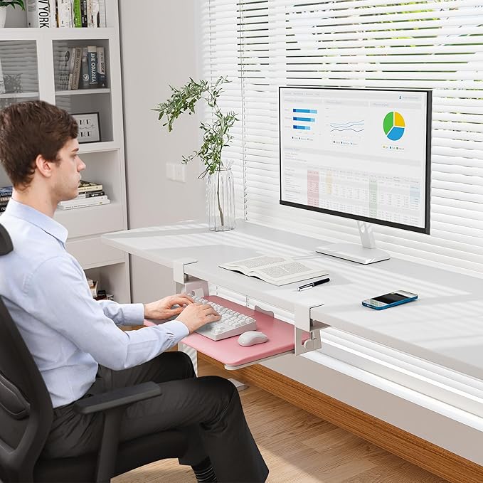 - ✅ MAXIMIZE YOUR DESK SPACE – Free up your desktop by placing your keyboard and mouse on this smooth slide-out tray. The ergonomic position helps reduce wrist strain while keeping your workspace tidy—perfect for offices, remote workstations, and gaming setups