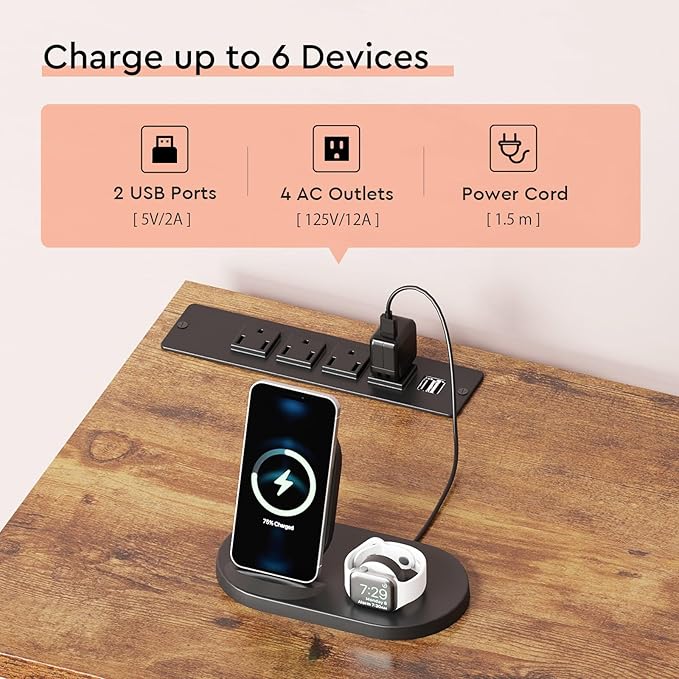 - [Charging Convenience] Equipped with a 59" power cord, 4 outlets, and 2 USB ports, this filing cabinet addresses the issue of limited or distant power sources. It allows you to conveniently power multiple devices, such as printers, scanners, and computers, all at once