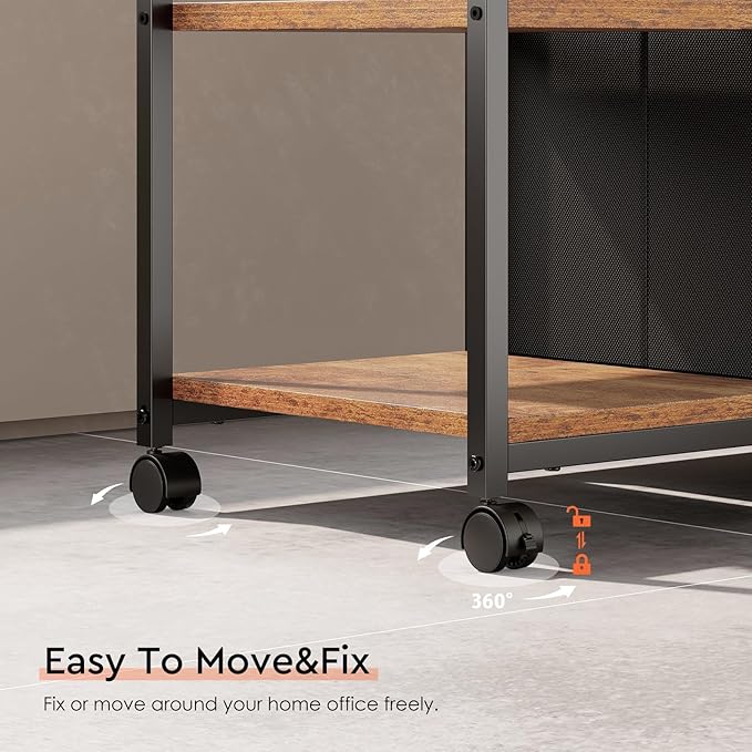 - [Easy Mobility] Mounted on four wheels, this printer stand can be moved and repositioned effortlessly. The two front casters feature built-in brakes, ensuring stability and preventing unwanted movement