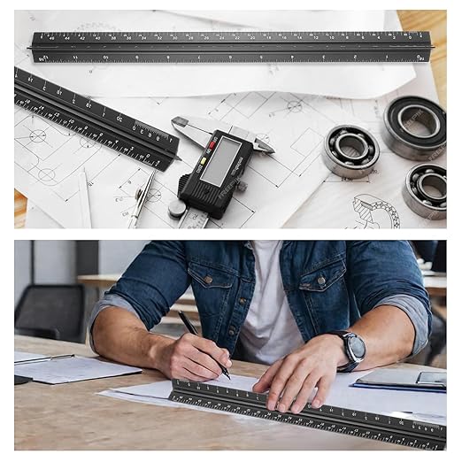 - Three-sided Scales: the size of each engineering ruler is approximately 32.5 x 2.55 x 2.25cm, and the three-sided scales include 16, 3, 1-1/2", 1, 3/4", 1/2", 3/8", 3/16", 1/4", 3/32" and 1/8", a professional-grade tool with extremely high precision