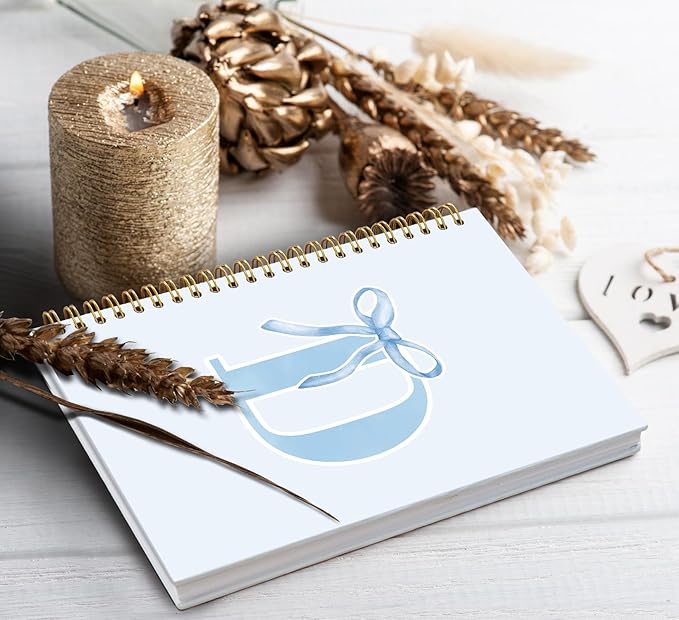 Initial D Notebook Journal,Personalized Teen Girl Gifts,Coquette Trendy Preppy Blue Bow Spiral Notebook,Monogrammed Gifts for Women Teen Girl,College Ruled Hardcover Spiral Notebook 5.5 x 8.3