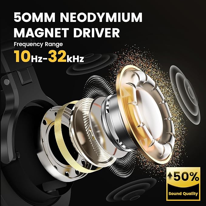 - 🏆Studio-Grade Sound with 50mm Drivers – Wide Frequency Response: These over ear headphones feature large 50mm drivers and an extended frequency response of 10Hz–32kHz, delivering rich detail across lows, mids, and highs. Ideal for studio headphones, podcast headphones, and recording headphones used in professional music production and audio editing.