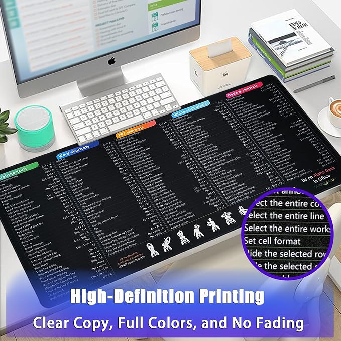 - 【Office Shortcuts Integration】Integrated Excel, Word, Powerpoint, Classic Outlook, Windows Shortcut Cheat Sheets, Shinyharbor desk pad for mouse and keyboard offers comprehensive office shortcuts and commands support to increase efficiency and swift handling of complex tasks, making you an Alpha Geek in office.