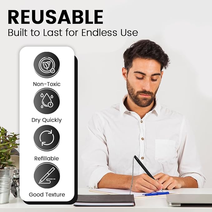- 【Perfect for High-Traffic Areas】- Designed as a counter pen with a chain and base, making it ideal for reception areas, customer service counters, and public workspaces
