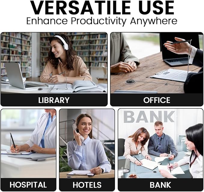 - 【Secure & Convenient】- Each pen with a chain and base is attached to a 23-inch retractable pen chain, keeping it in place at offices, reception desks, banks, and hospitals for easy access