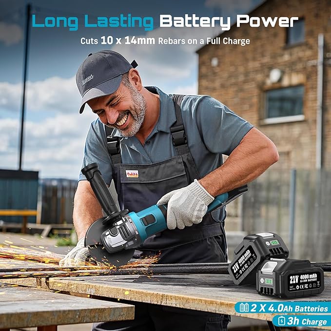 - What You Will Get: The Seesii brushless angle grinder kit includes: 2 x 4000mAh Batteries, 1 x Charger, 1 x Side Handle, 4 x Cutting Wheels, 4 x Flap Wheels, 1 x Wood Carving Wheel, 2 x Wheel Retainer Sets, 1 x Pair of Gloves, 1 x Pair of Safety Goggles, and 1 x Carrying Bag — providing you with everything needed for a comprehensive grinding solution