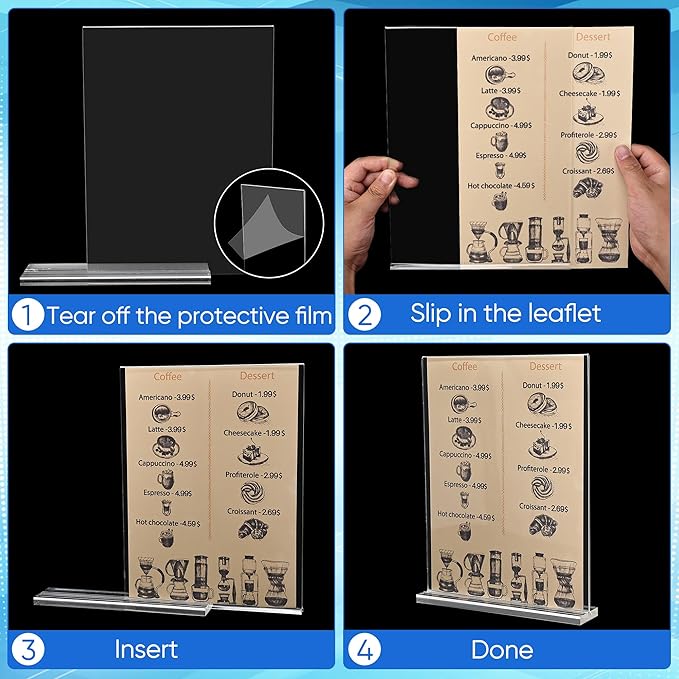 - Versatile Applications: Ideal for displaying advertisements, menus, flyers, and brochures in homes, restaurants, offices, weddings, trade shows, and more.