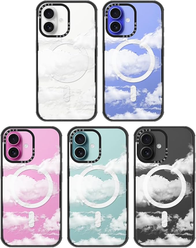 MOSNOVO Magnetic Case for iPhone 16, 10ft Military-Grade Protection, Compatible with Magsafe, Shockproof Phone Case for iPhone 16 - Cloud - Clear Black