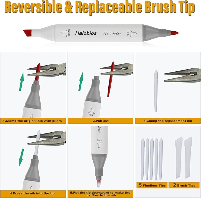 - ENJOY EXTRA ACCESSORIES: We also provide five extra interchangeable nibs, a transparent divider, and a color card. Once your markers have been used extensively and the nibs become worn, it's time to switch them out. The transparent divider aids in preventing ink spills and leaks, preserving your artwork's integrity and clear visibility. Additionally, the color card and the numbered cap facilitate easy color identification and matching.
