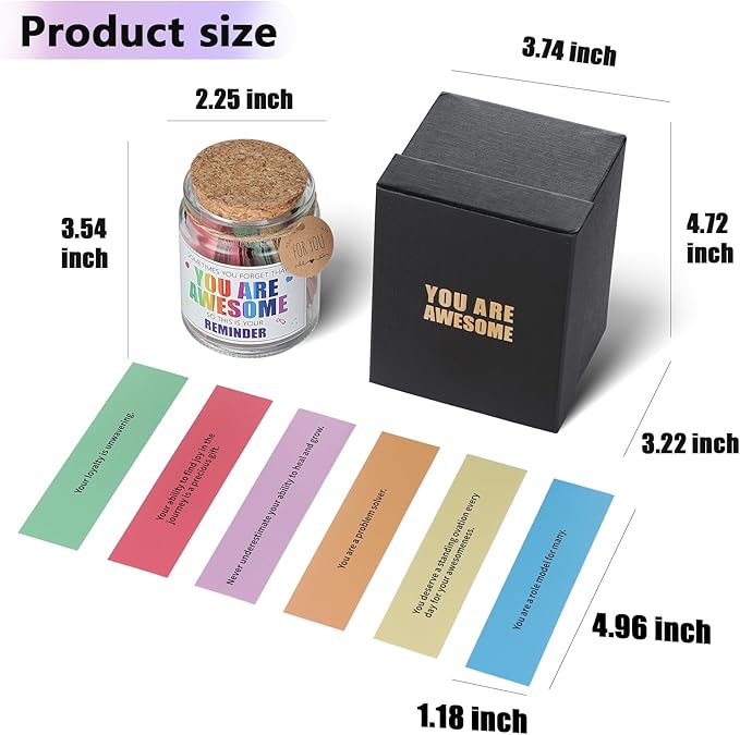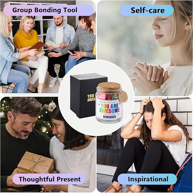 - Personal Spiritual Boost: Your personal inspiration sanctuary! 90 gem-like affirmations in six colors spark daily motivation. Draw a sentence during morning meditation or a nature walk to crush self-doubt (sometimes you forget your awesome gifts) and set a positive tone. The portable jar fits in any bag, making You Are Awesome Gifts your on-the-go confidence booster.