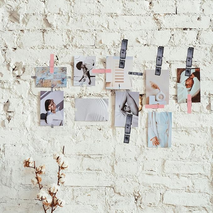 - Size: Photo hanging clips measure approx. 1.37 x 0.28 x 0.39 in/3.5 x0.7 x1cm (L x W x H), All plastic clips push pins are packed in a small transparent bucket, so that your desktop is clean and tidy, safe and will not accidentally hurt you,convenient and easy to carry and use.