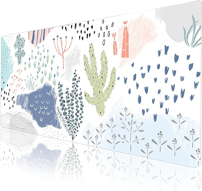 - Extended Size Desk Mat: This Plant Cartoon Doodle desk pad measures 31.5"×15.7"(80×40cm), which is large enough to accommodate your laptop, keyboard, mouse, coffee cup and more. Fits your desktop perfectly and provide perfect movement space. You can also cut to the size you want.