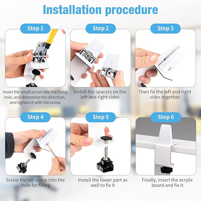 - 【High Quality Material】-Our acrylic desktop partitions are made of high-quality frosted acrylic, and the Clamps are made of high-strength alloy steel. They are beautiful and coordinated, and can perfectly blend with your office and learning environment. They are sturdy, durable, and easy to clean.Perfect packaging prevents the product from scratching the surface during shipping.
