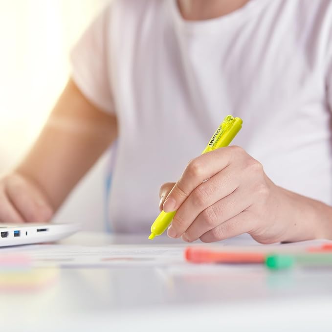 WRITECH Retractable Highlighters Chisel Tip: Fluorescent Yellow Ink Highlighter Marker Pens No Bleed & Smear Pack for Home School Office (12ct Yellow)