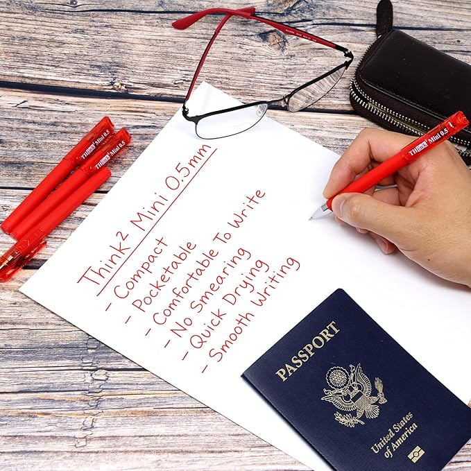 - 【High Quality】 - Think2 Compact Red Gel Pens are the perfect writing instrument. These tiny little pens are ideal for schools, office, home, teachers, kids, children, girls, students, etc