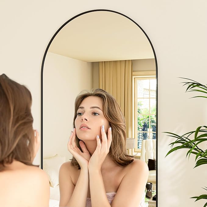 - 👍【Extra Large Floor Mirror】The Arched large full length mirror can provide a full body view when leaned against the wall, to give you the perfect viewing angle before you head out the door. The full length floor mirror, which can be an accent piece for any room. The modern style mirror can match almost any type of room decoration, making your space more open and bright.