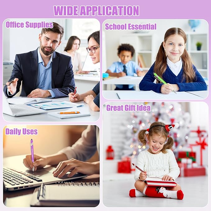 - Inspirational Quotes: Each cool pen is adorned with a different inspirational saying, like "GO FOR IT," "NEVER GIVE UP," "YOU GOT THIS," and "NOTHING IS IMPOSSIBLE." These high-quality pens with stylus tips in various colors will continue to motivate you for years to come.