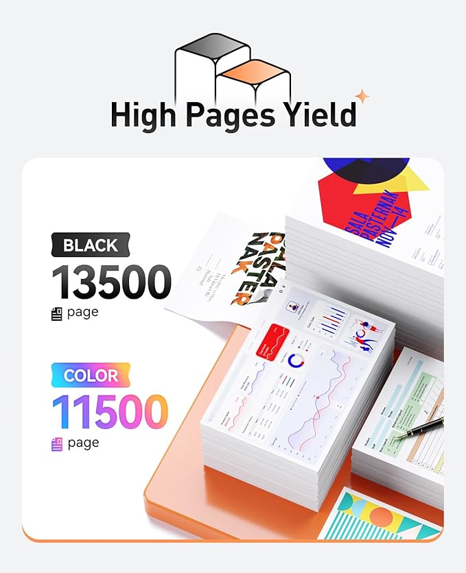 - Yield & Version: 13,500 pages for Black and 11,500 pages Color toner cartridge (A4, 5% Coverage), High Yield Version 655A toner cartridge.