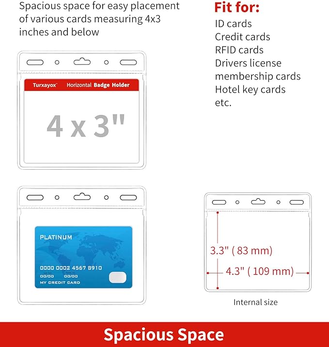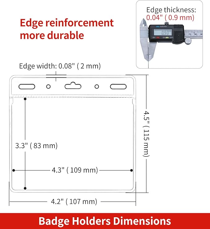 - DIMENSIONS: Outer dimensions measure 4.5 x 4.2 inches, Inner dimensions measure 4.3 x 3.3 inches, suitable for 4 x 3 inches ID cards and name tags.