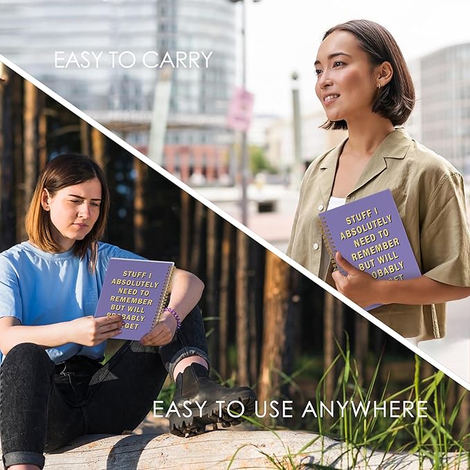 Funny Purple Office Spiral Notebook, Funny Purple Office Supplies Gifts for Coworkers, Stuff I Absolutely Need to Remember but Will Probably Forget Journal Notebook, Snarky Humor Notebooks for Work, 5.5x8.3In