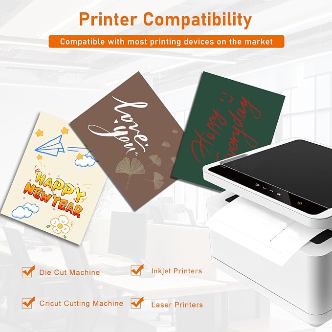 - Printer Compatibility:our thick printer paper card stock is compatible with most types of laser printers, inkjet, die-cutting machines, and cricut cutting machines. Please ensure that your printer can print on 250gsm before ordering