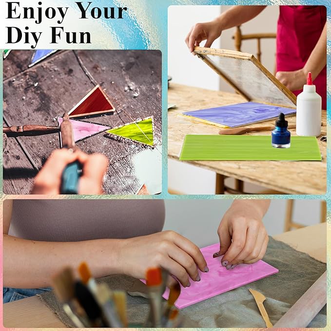 - Wide Applications: cut the cathedral glass into your own shape according to your needs, and then reassemble them, or paste the cut glass pieces on vases, table lamps, etc. to create unique creations for decorating your home; Add color to your life, the ideal project for mosaic lovers and beginners