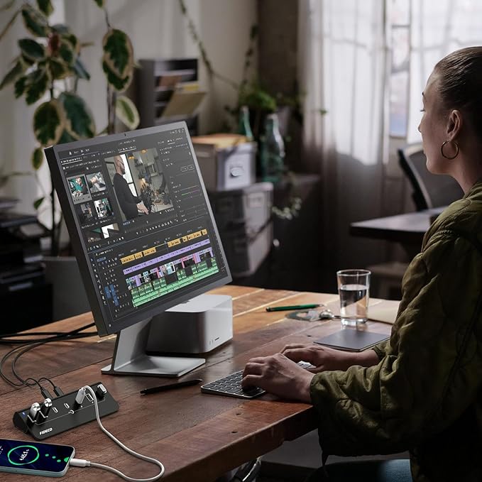 - 【Aluminum Design】FIDECO USB hub is made of full aluminum alloy with ergonomics design to help dissipate heat quickly. The bottom of the data hub is equipped with non-slip rubber pad, which can help keep more stability without scratching your desk. The USB hub can be for both practical and aesthetic purposes!