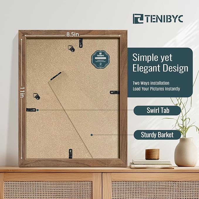 - 【Strong Practicality】Our walnut frame back panel is equipped with multiple hangers, so it can be displayed on the wall and table horizontally or vertically, perfectly adapting to 8.5x11 or 11x8.5 photos. Additionally, our unique spin-lock design ensures a swift and effortless setup