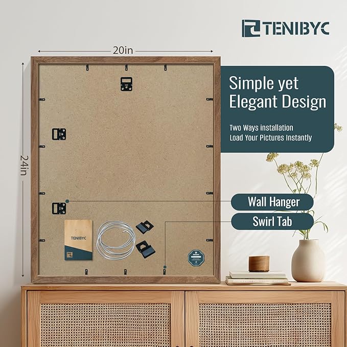 - 【Strong Practicality】Our walnut frame back panel is equipped with multiple hangers, so it can be displayed on the wall horizontally or vertically, perfectly adapting to 20x24 or 24x20 photos. Additionally, our unique spin-lock design ensures a swift and effortless setup