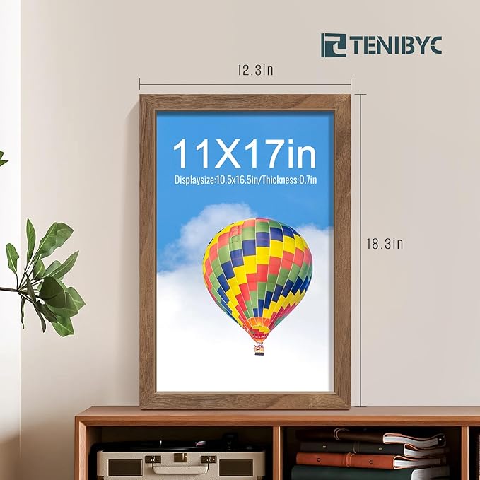 - 【Strong Practicality】Our walnut frame back panel is equipped with multiple hangers, so it can be displayed on the wall horizontally or vertically, perfectly adapting to 11x17 or 17x11 photos. Additionally, our unique spin-lock design ensures a swift and effortless setup