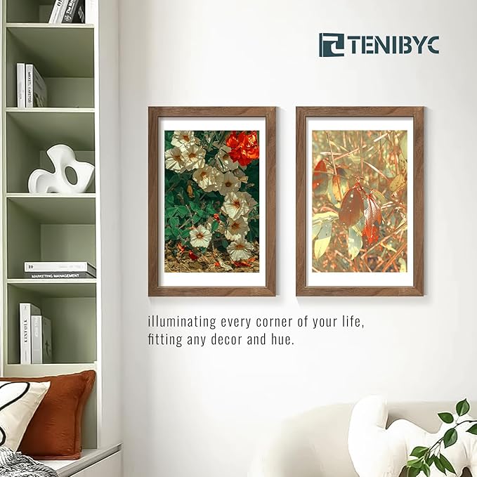 - 【Strong Ornamental Value】TENIBYC walnut frame, like a delicate painting endowed by nature. The color is a steady brown, embellished with dark or light black wood grain, which looks natural and elegant from afar, and exquisite and delicate up close
