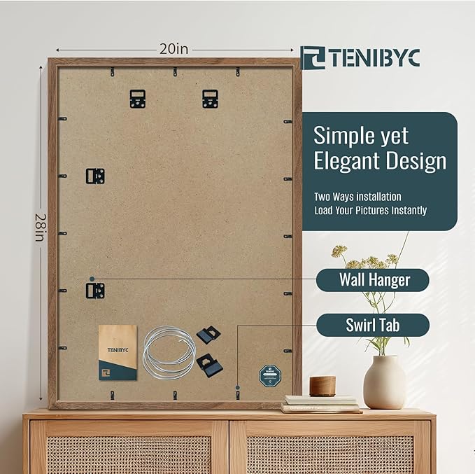 - 【Strong Practicality】Our walnut frame back panel is equipped with multiple hangers, so it can be displayed on the wall horizontally or vertically, perfectly adapting to 20x28 or 28x20 photos. Additionally, our unique spin-lock design ensures a swift and effortless setup
