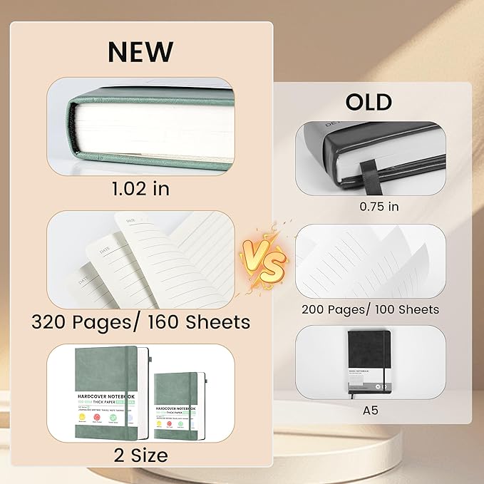 CAGIE 2 Pack Notebooks Journals for Women Men Hardcover A5 Journaling Notebooks Leather Journals for Writing Thick Journal Supplies Diary, Green& Black