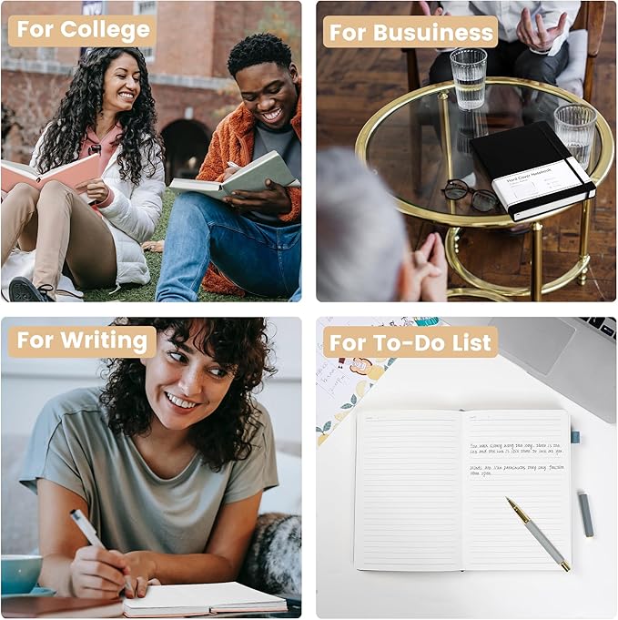 - Premium Leather& Details: 2 pack journaling notebooks mix leather hardcover with classic style, great for women& men. Inside: a silk bookmark (keeps your place) and an elastic band (secures pages), great for daily use