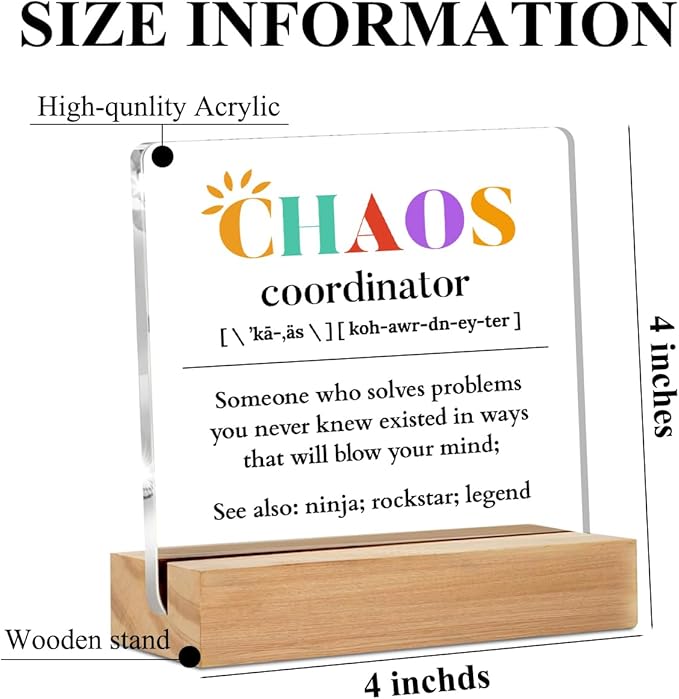 Christmas Thank You Gifts, Chaos Coordinator Gifts Table Desk Decor, Thank You Gifts for Women Coworkers Boss Nurse, Office Gifts Acrylic Sign, Teacher Boss Lady Gifts, Acrylic Plaque with Stand, Office Home Bedroom Decor