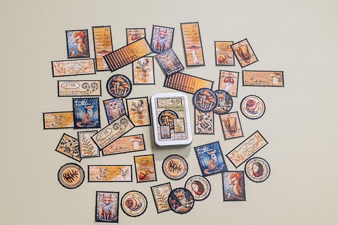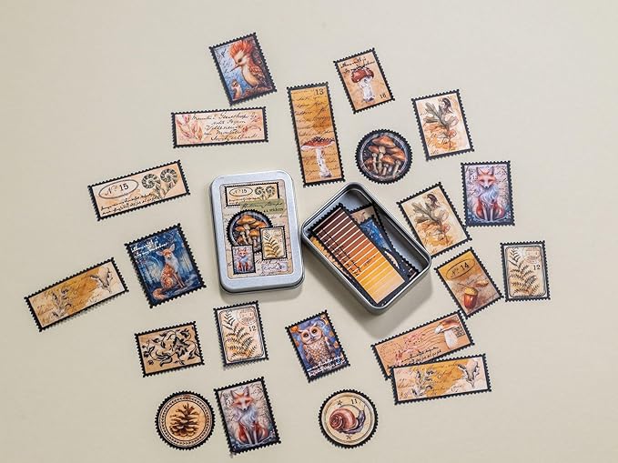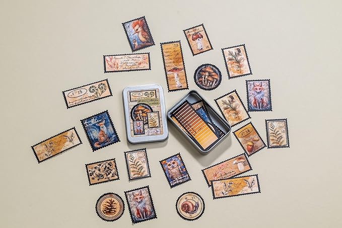 Forest Stamps Sticker Tin Box 42 Stickers