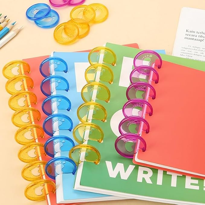 - Widely Usage:They are suitable for papers of diverse sizes.various covers.and a wide assortment of accessories.Whether it's binding DIY discbound notebooks.planners.agendas.albums.recorded content.file folders.business card bags.photo bags.file bags.index.or curriculum cards.they perform admirably.The durable plastic disc binder rings empower you to effortlessly add.remove.or reorganize pages or other items.