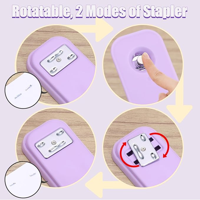 SYMDROMIA 13-in-1 Office Desk Organizer Set with Stapler and Tape Dispenser, Pen Holder, Scissors, Ruler, Hole Punch, 2 Pens & More Desktop Accessories for Back to School Supplies (Purple)