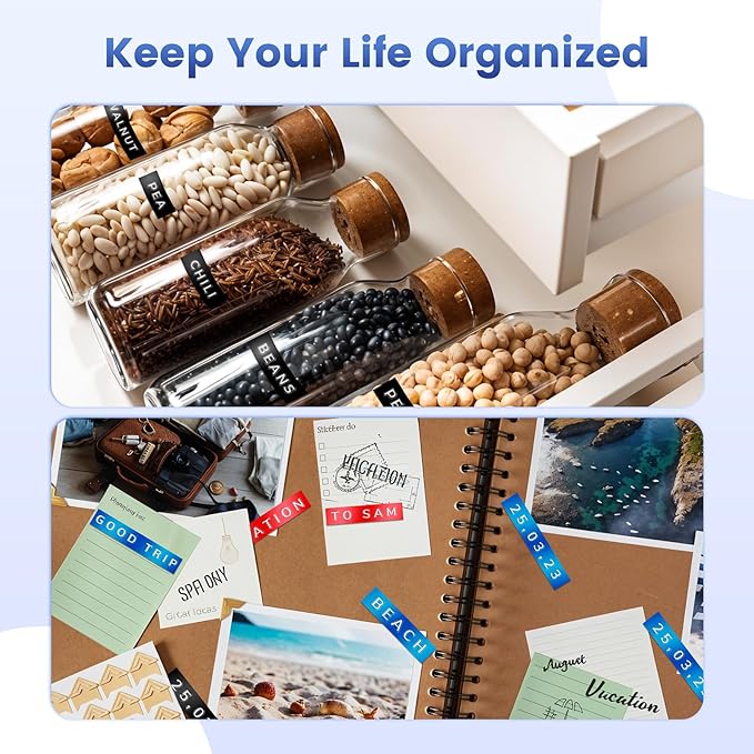 - Blue embossed label Maker【Widely used】:They are widely used in homes, offices, schools and other places. This includes organizing condiments in the kitchen, storing laundry in the bedroom, managing tools in the warehouse, and organizing papers in the office. It can also be used to mark scrapbooks, photo albums, and DIY to cultivate children's creativity and hands-on skills. Use your imagination to unlock more uses to help you get your life organized