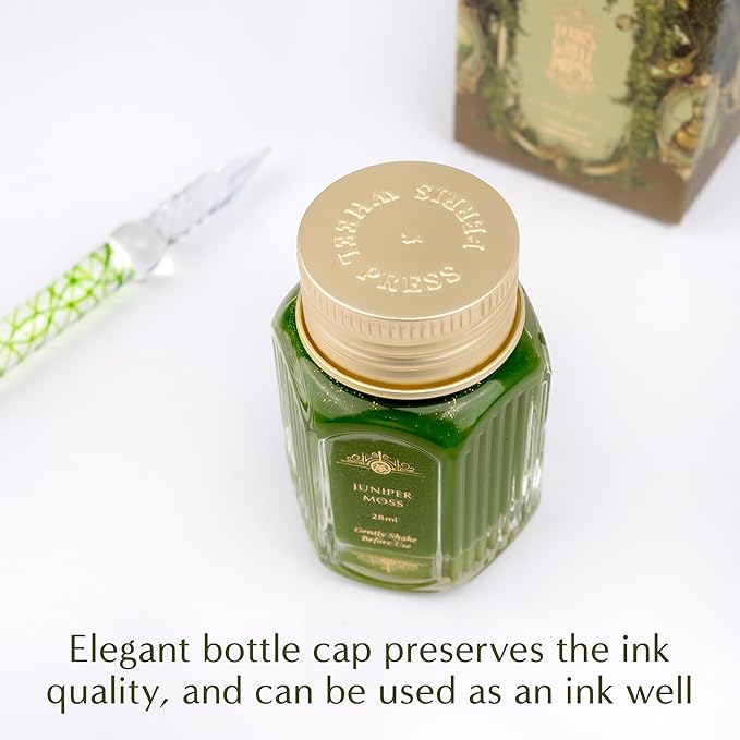 - Rich Ink Tone – Unveil the magic of Juniper Moss, a captivating moss green ink with a shimmering gold touch. Ideal for calligraphy, lettering, and creative art, this vibrant ink dip pen performs beautifully on all paper types. Its bold, opaque finish ensures each stroke is vivid, elegant, and unforgettable