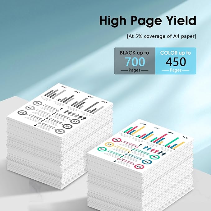- High Page Yield: 700 Pages Per Black Ink Cartridge and 450 Pages Per Color Ink Cartridge (Letter/A4, at 5% coverage)