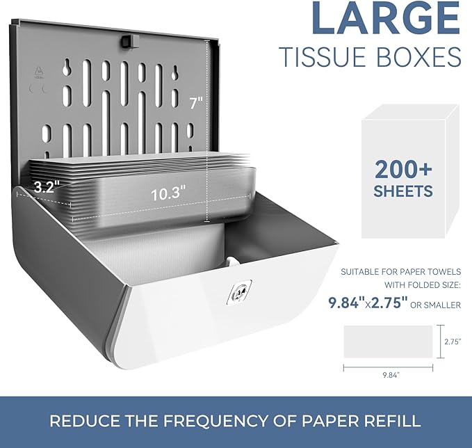 - 【200pcs CAPACITY & TRANSPARENT WINDOW】This towels dispenser Holds up to 200 papers. You can quickly check and refill towels by the big transparent window.
