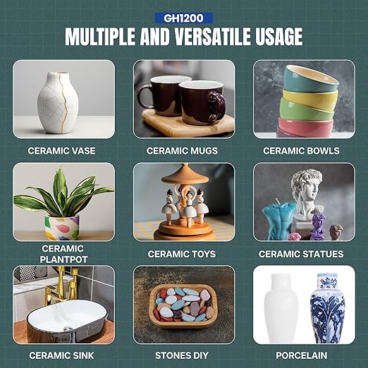 - 【WIDE RANGE OF PORCELAIN CONQUERED】 Our food safe glue for ceramic can work its magic around several ceramic and porcelain objects around the household. The glue for china and porcelain can fix and bond your bowls, mugs, vases, dishes, pots, and more. GH1200 glue for porcelain repair brush on ceramic is your ultimate fixing answer